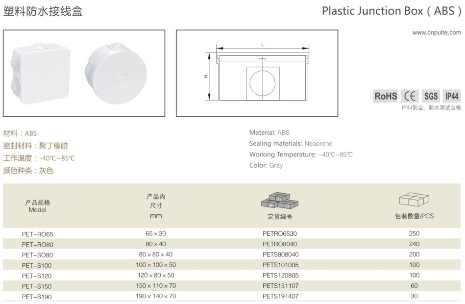 尺寸:80×40(mm)多重密封/安全防水 防水IP等級(jí) (IP44)可供選材料(常ABS)ABS阻燃、PC,合金材PC阻燃安全可靠/耐高溫/耐電/壽命長(zhǎng)每一個(gè)部分都是精心挑選的,只是為了打造一個(gè)好的產(chǎn)品