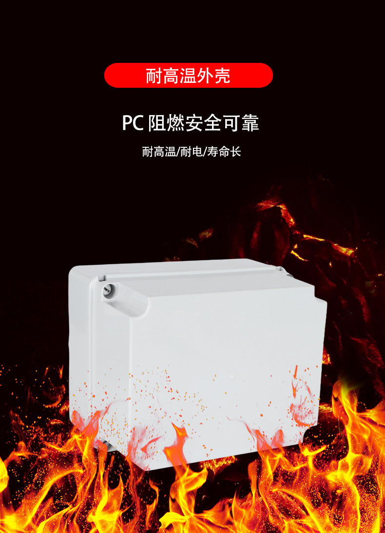 多重密封/安全防水 防水IP等級(jí) (IP44)可供選材料(常ABS)ABS阻燃、PC,合金材PC阻燃安全可靠/耐高溫/耐電/壽命長(zhǎng)每一個(gè)部分都是精心挑選的,只是為了打造一個(gè)好的產(chǎn)品