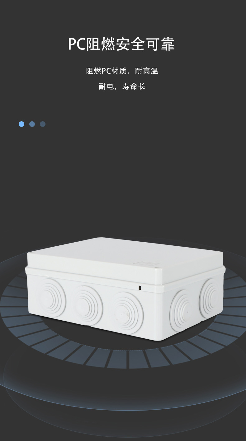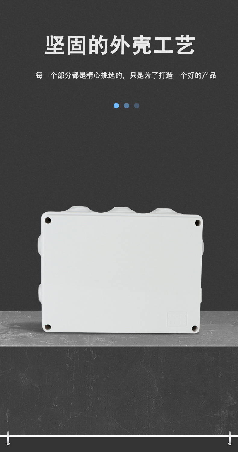 尺寸:190×140×70(mm)多重密封/安全防水 防水IP等級 (IP44)可供選材料(常ABS)ABS阻燃、PC,合金材PC阻燃安全可靠/耐高溫/耐電/壽命長每一個(gè)部分都是精心挑選的,只是為了打造一個(gè)好的產(chǎn)品