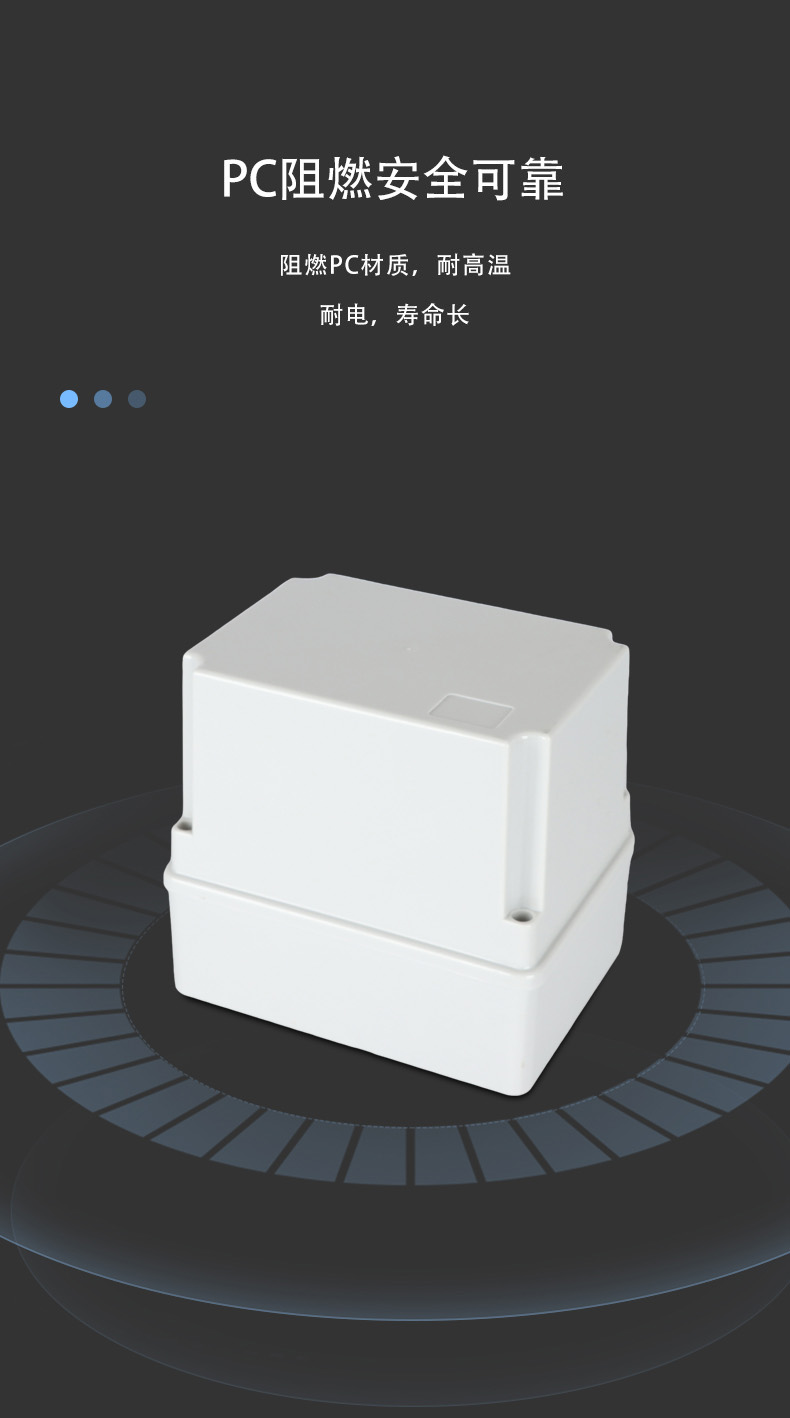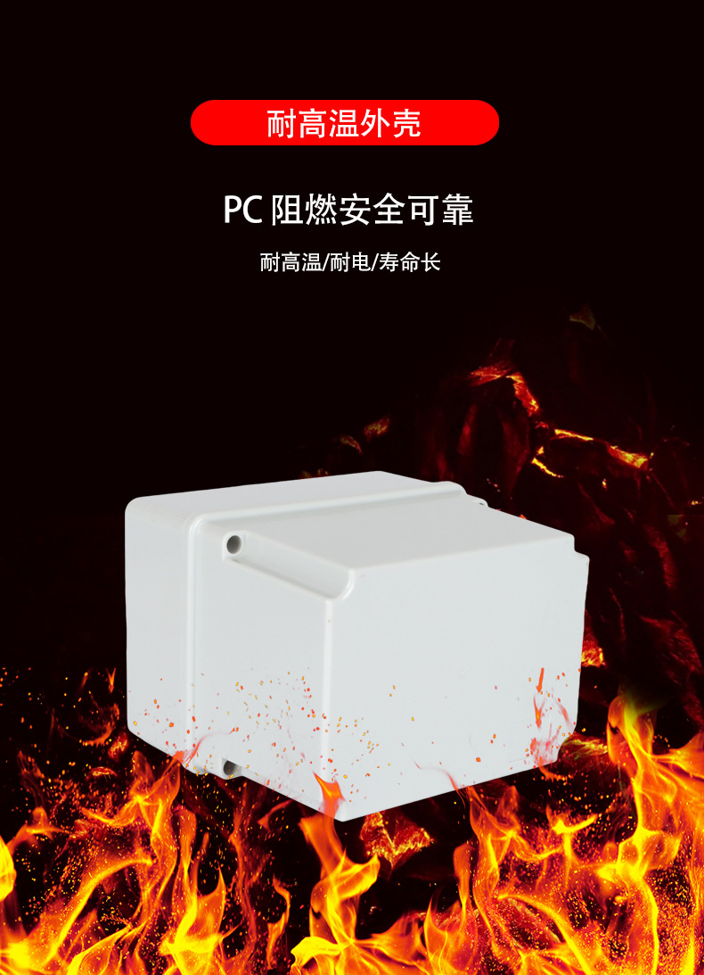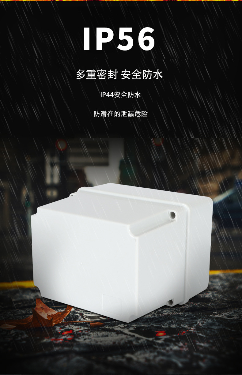 多重密封/安全防水 防水IP等級 (IP44)可供選材料(常ABS)ABS阻燃、PC,合金材PC阻燃安全可靠/耐高溫/耐電/壽命長每一個部分都是精心挑選的,只是為了打造一個好的產(chǎn)品