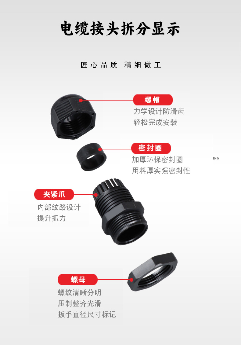 高密封性防水接頭保護電纜安全,長期使用不容易滲水
